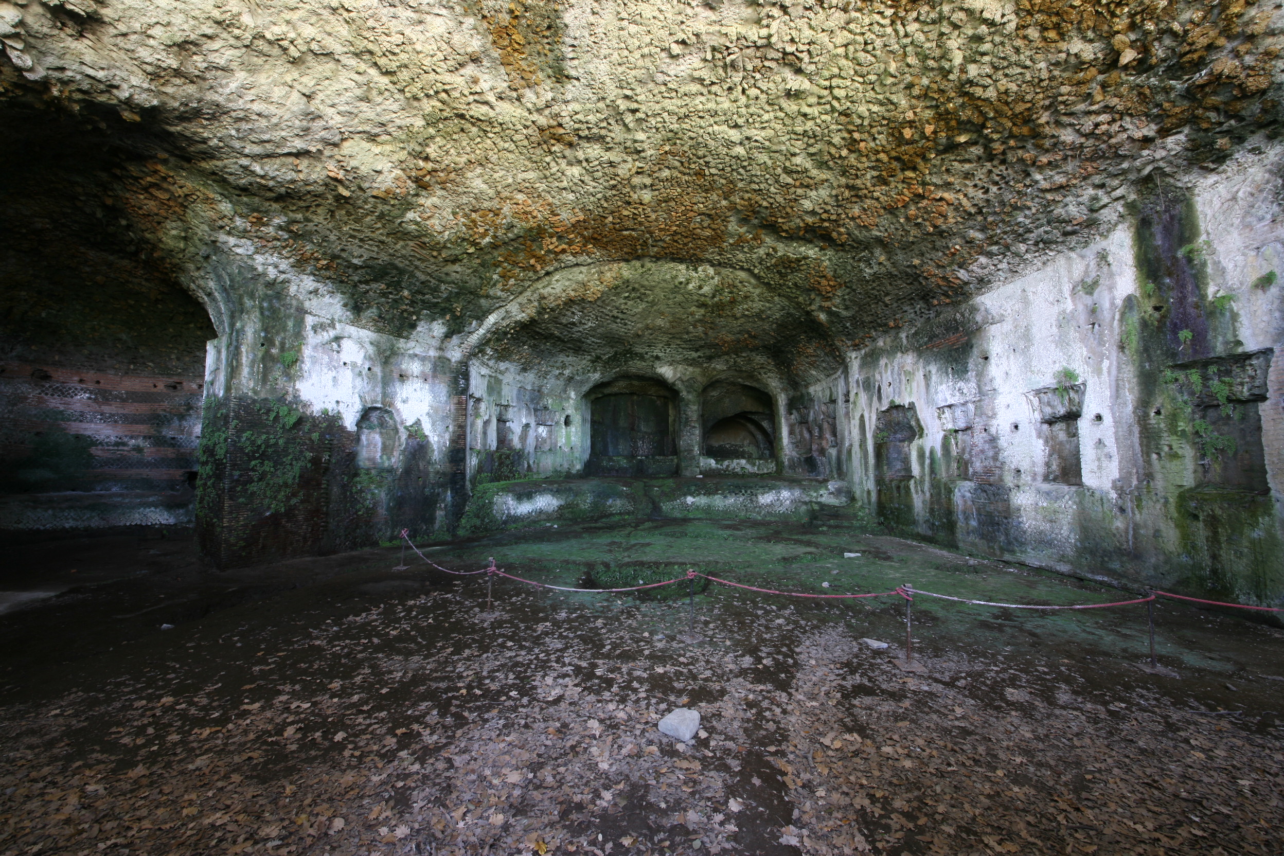 Sul lato di fondo della grotta si sale tramite una scaletta scavata nel tufo ad un podio, su cui si affacciano due ambienti: quello di sinistra rettangolare, quello di destra con un’abside, preceduto da un piccolo vano obliquo: da qui, tramite un condotto idraulico, arrivava l’acqua che alimentava il ninfeo. Sia questi ambienti sia la volta della grotta erano decorati a finta roccia con pomici; la vasca era dipinta in azzurro all’interno, con lastre marmoree lungo le pareti, mentre il bordo era decorato con mosaici di paste vitree di soggetto marino (Nettuno, le nereidi), purtroppo conservati solo in parte. Il ninfeo era abbellito da gruppi scultorei, tra cui quello con Polifemo e un altro con Scilla, ad imitazione della grotta-ninfeo di Tiberio nella villa di Sperlonga.