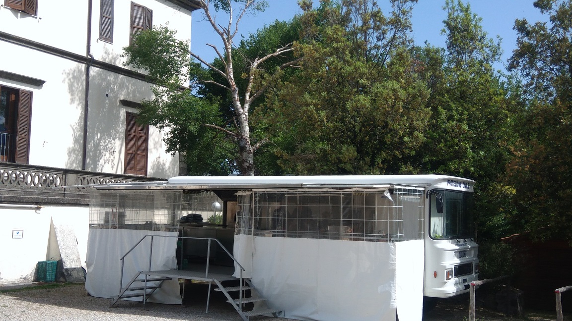 La cucina da campo della Protezione Civile allestita presso la sede dell'Ente Parco Castelli Romani, in via Cesare Battisti 5 (Rocca di Papa)
