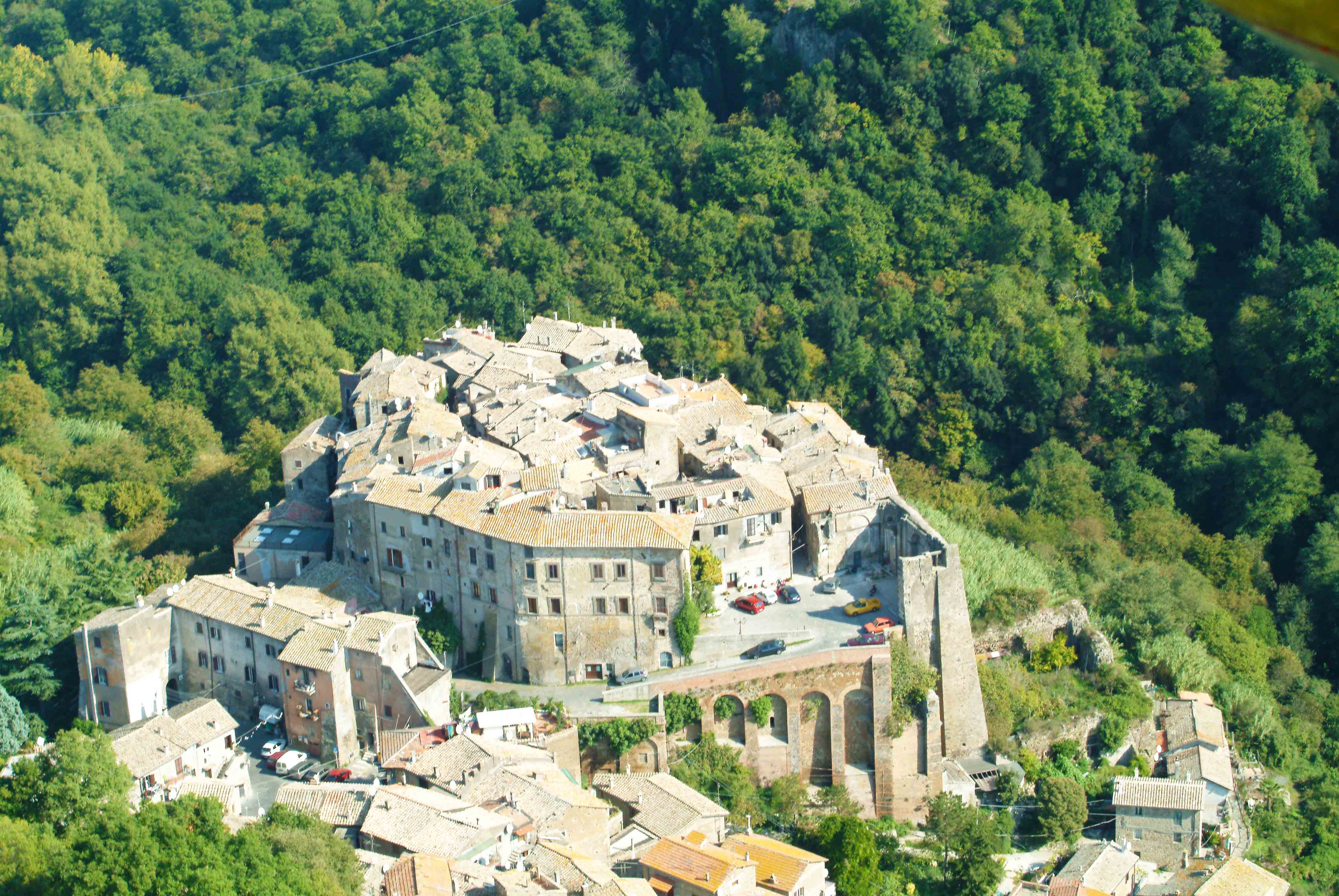 A vederlo dall’alto si capisce subito perché Mazzano Romano, nel Parco Valle del Treja, fu costruito proprio lì: sta su uno sperone di tufo a picco sulla valle, quasi introvabile per chi non lo conoscesse, facilmente difendibile, vicino al fiume, non lontano (ma a distanza di sicurezza) da vie di comunicazione importanti. L’antico abitato conserva ancora l’impianto urbanistico medievale, con una struttura elicoidale fatta di vicoli che seguono le pieghe della rupe tagliata nella roccia vulcanica.