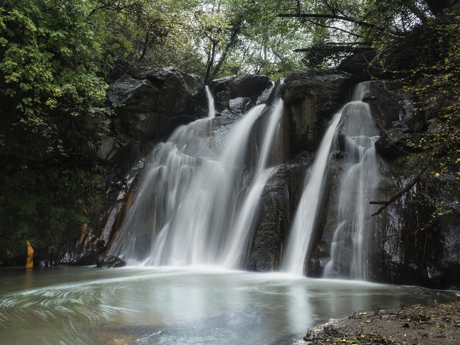 L’acqua che saltella sulle scure rocce vulcaniche dà vita alla cascata del torrente Cerreto a Nepi (Vt).