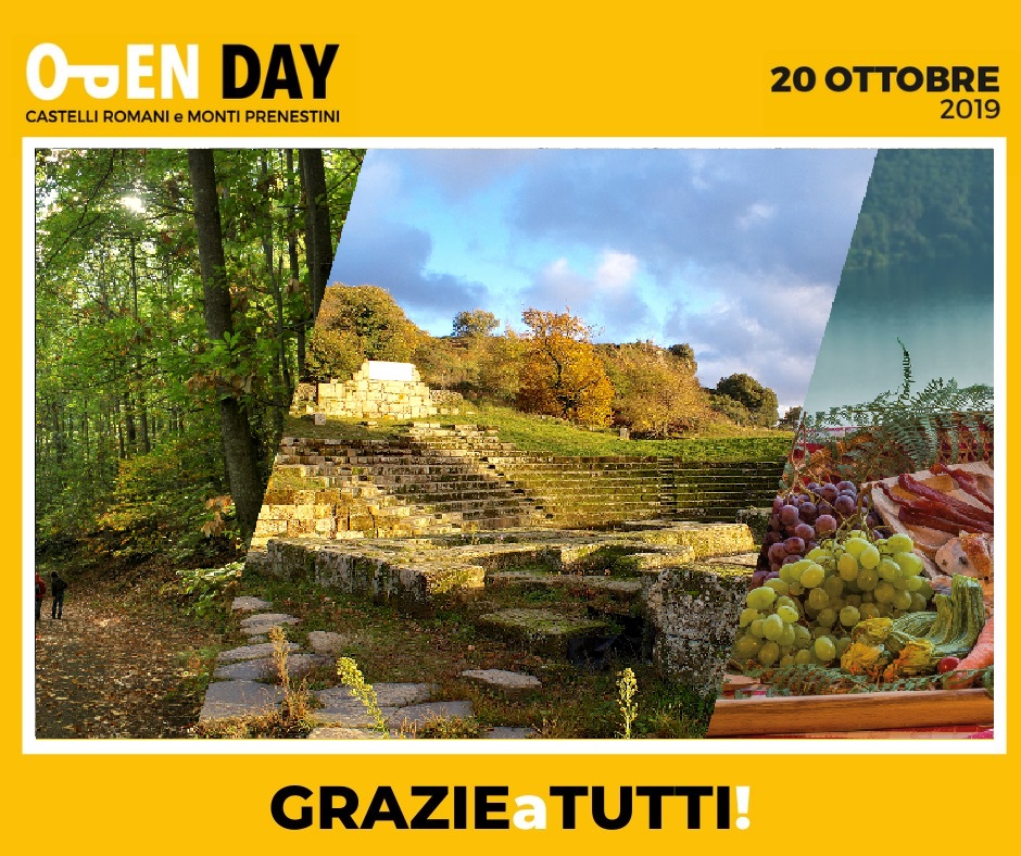 Entusiasmo, partecipazione, condivisione. Queste le parole chiave dell'Open Day Castelli Romani e Prenestini 2019. Un evento – frutto della collaborazione dei principali enti di promozione territoriale – nato per promuovere le eccellenze dei nostri luoghi ricchi di storia, arte e bellezze naturalistiche, enogastronomia. Le molteplici attività proposte hanno visto l’impegno trasversale – a titolo volontario – del mondo dell'associazionismo locale, delle reti d’impresa, delle scuole e delle diocesi.