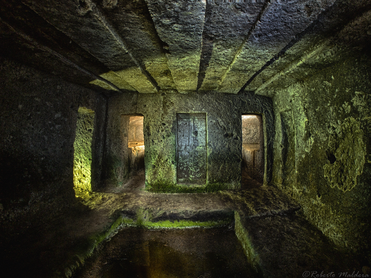 Tomba della finta Porta, necropoli della Castelluzza, a Tuscania (Viterbo). È una tomba a tre camere che ha la caratteristica di avere una finta Porta incisa sulla parete di fondo della prima camera. Ai lati della porta ci sono due camere con letti funerari scolpiti.