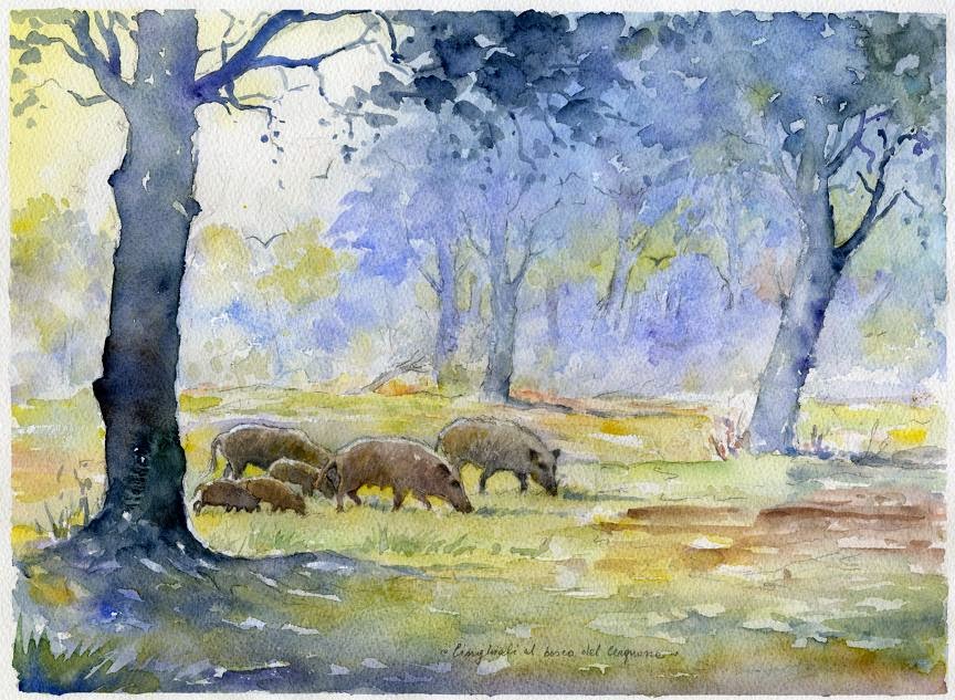 Immagine: Cinghiali al Bosco del Cerquone, opera di Duilio Papini