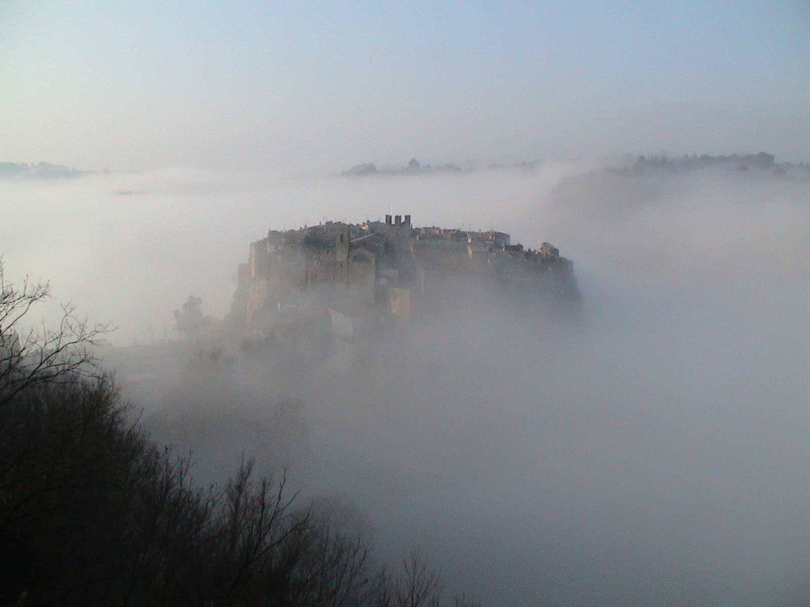 In certe mattinate d’inverno Calcata sembra un’isola sospesa tra le nebbie. È bello fermarsi, chiudere gli occhi e respirare l’odore pungente dell’aria umida che sale dalla valle.
