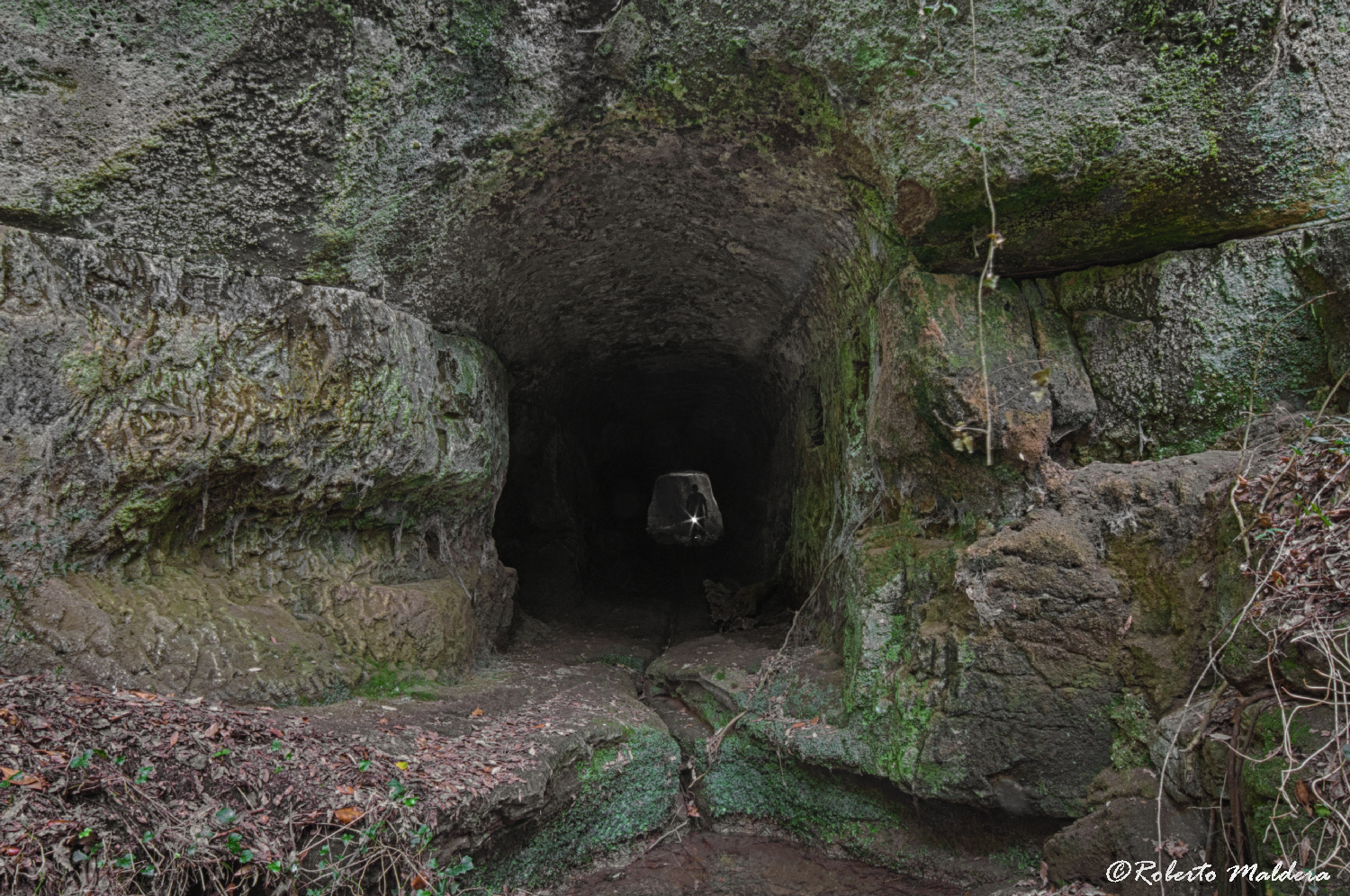 Il cunicolo idraulico etrusco a via degli Inferi, nella Necropoli della Banditaccia, Cerveteri (Roma).