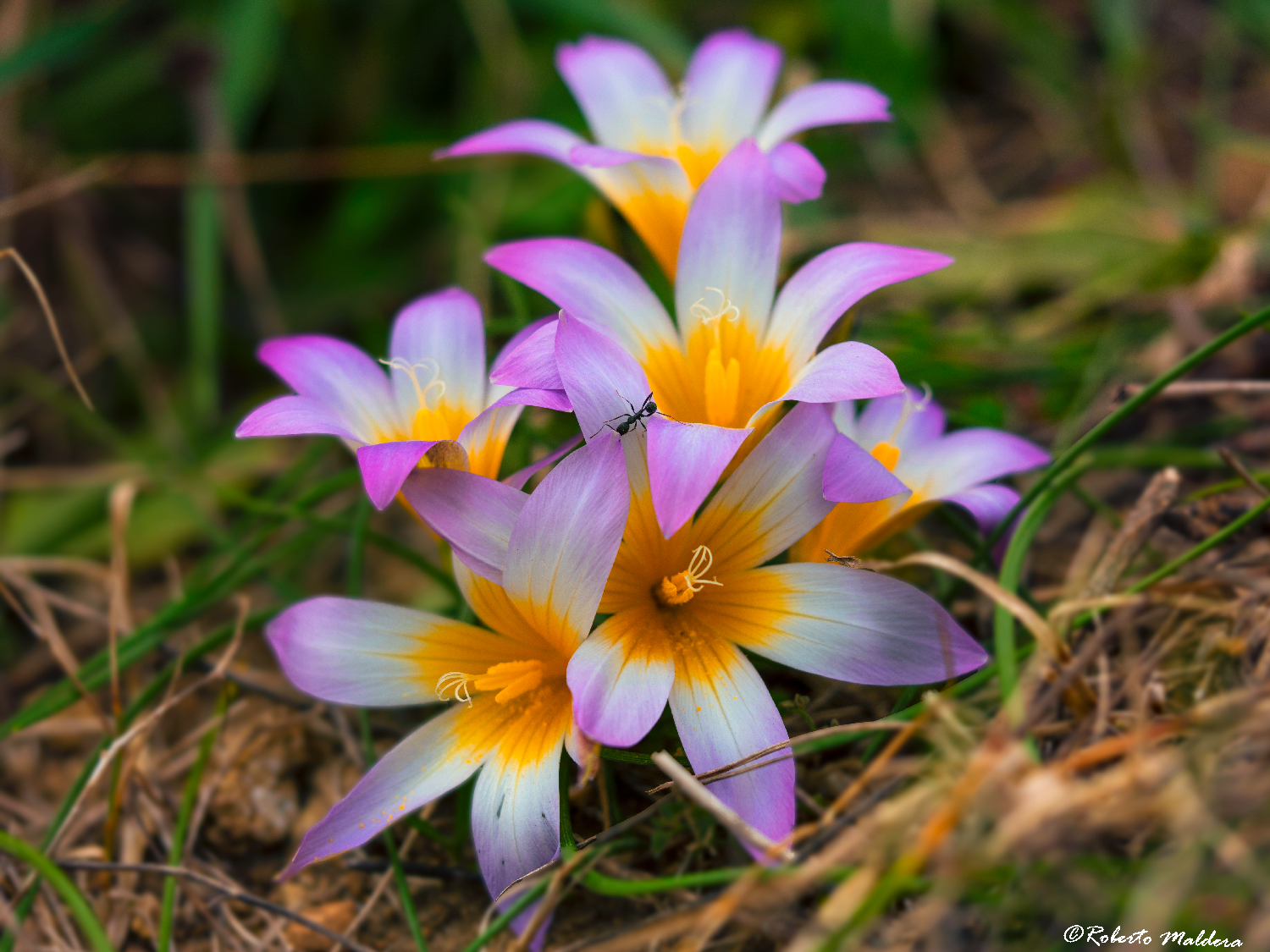 Zafferanetto comune, Romulea bulbocodium, famiglia Iridacee, fotografato nel monumento naturale “La Frasca”, a Civitavecchia