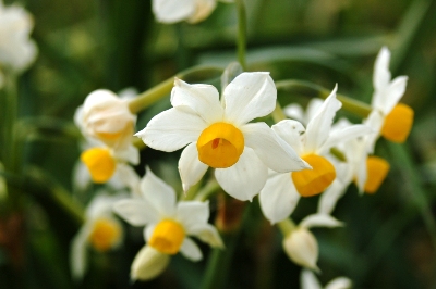 Il narciso nasce tra marzo e maggio, soprattutto all’interno del bosco in zone umide e fresche, il fiore è di colore bianco con al centro una struttura gialla a forma di tazza da cui deriva il nome, il suo profumo è utile contro le emicranie e il suo olio essenziale è ancora oggi utilizzato in profumeria.