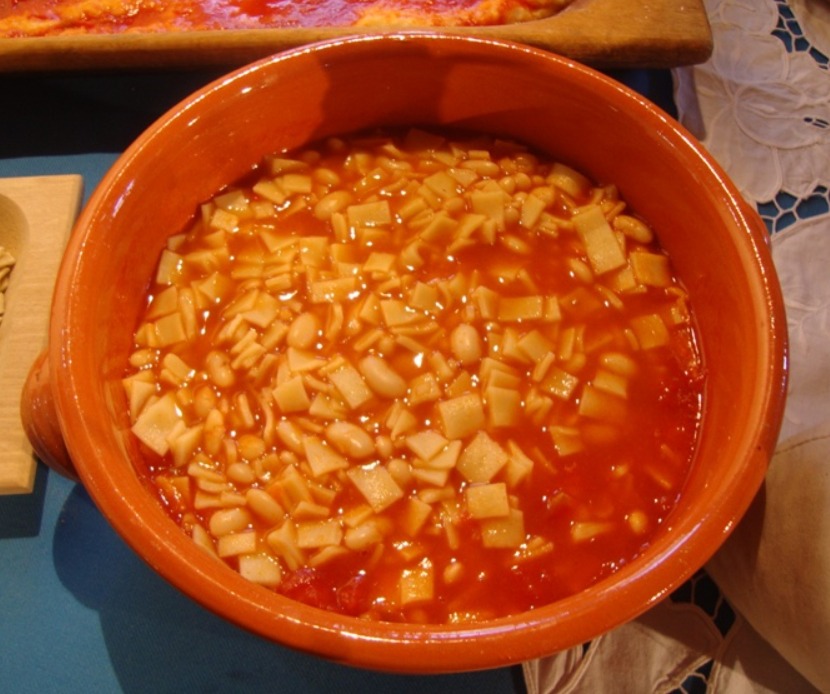 Si prepara, invece, a parte il sugo con pomodoro fresco, olio, coste di sedano, carote e ritagli di pancetta al quale poi si aggiunge la fagiolina già lessata e si lascia ancora cuocere l’insieme per qualche minuto.