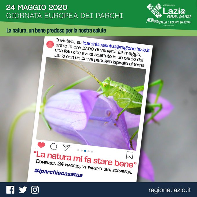 In occasione della Giornata Europea dei parchi, abbiamo uno speciale de #iparchiacasatua, che da venerdì 22 a domenica 24 maggio animerà il sito parchilazio.it e la pagina Facebook.