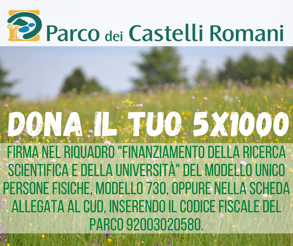 Da quest'anno è possibile destinare il 5x1000 all'Ente regionale Parco dei Castelli Romani: una buona notizia per tutti coloro che vogliono dare il proprio fattivo sostegno alla tutela e alla valorizzazione del territorio, scegliendo di indirizzare un contributo, come previsto dalla dichiarazione dei redditi, in favore del Parco.