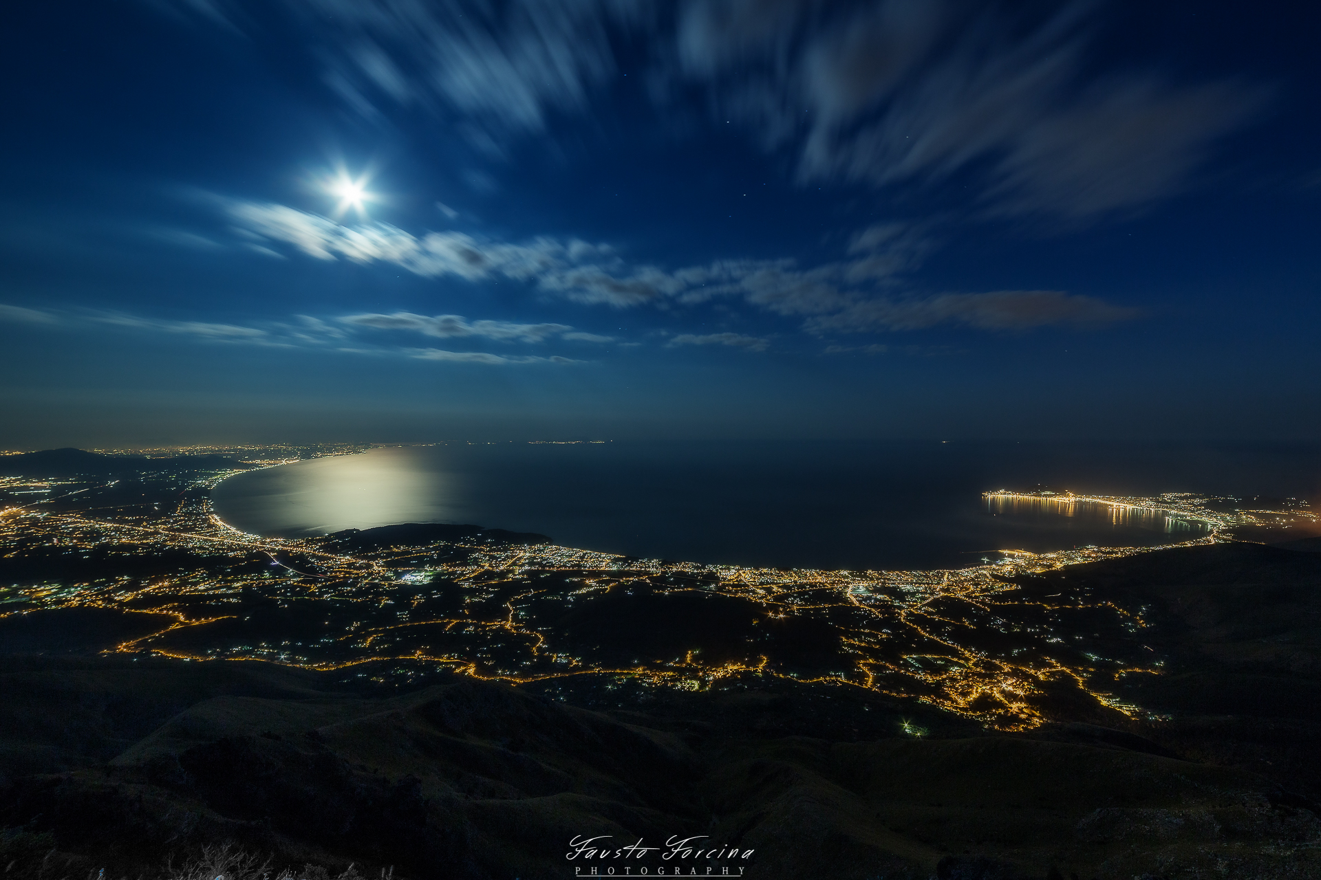 Gaeta: l'abbraccio della terra verso il mare, in una notte illuminata dalla luna.