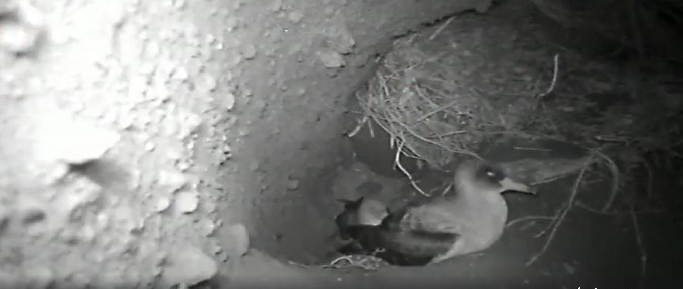 Il nido di questa coppia di berte maggiori Calonectris diomedea è frequentato da molti altri animali.