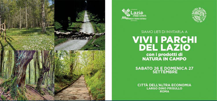 Sabato 26 e domenica 27 settembre alla Città dell'Altra Economia nel quartiere di Testaccio a Roma si terrà la manifestazione "Vivi i Parchi del Lazio con i prodotti a marchio Natura In Campo".