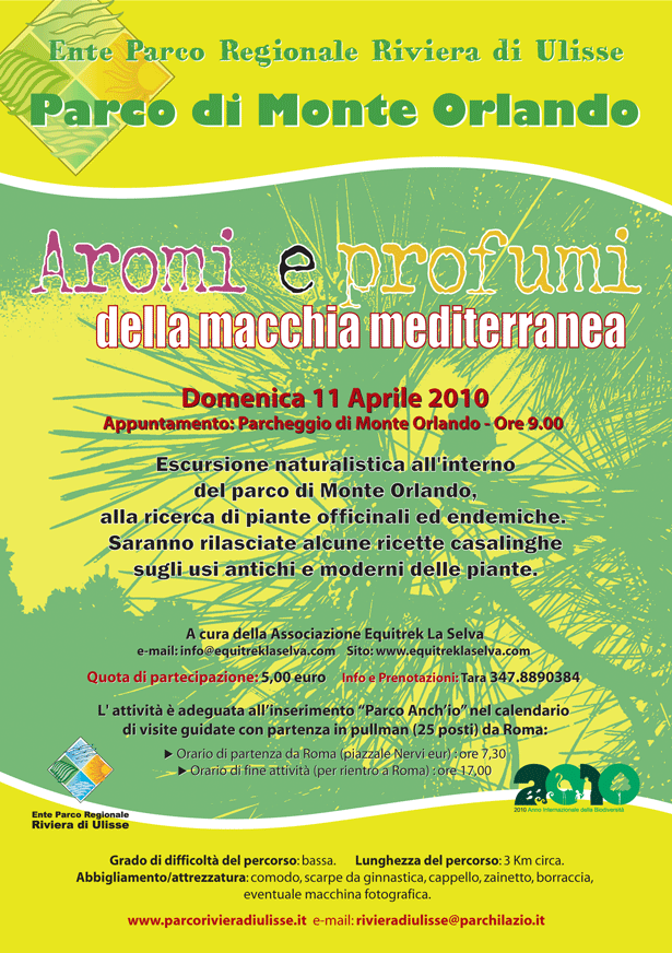 Escursione naturalistica all'interno del parco di Monte Orlando, alla ricerca di piante officinali ed endemiche. Saranno rilasciate alcune ricette casalinghe sugli usi antichi e moderni delle piante.