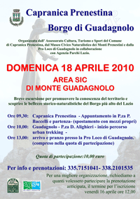 Ora e luogo dell'appuntamemto: ore 9.30 P.za P.Baccelli - Capranica Prenestina (Rm)
