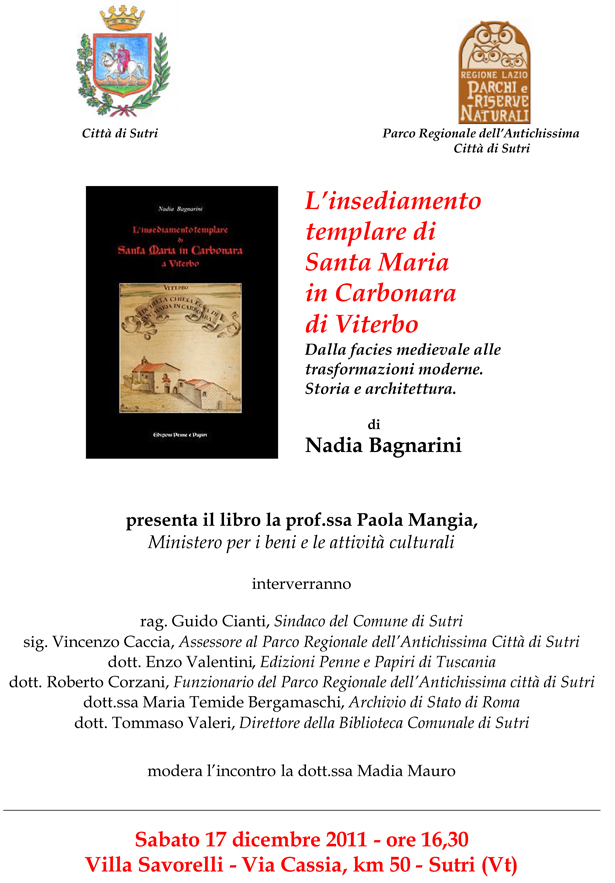 Presentazione del libro "L'insediamento templare di Santa Maria in Carbonara di Viterbo, Dalla facies medievale alle trasformazioni moderne. Storie e architettura" Di Nadia Bagnarini