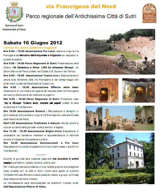ore 9.00 - 19.00 Parco Regionale di Sutri: presentazione della mostra "Da Canterbury a Roma: 1.800 km attraverso l'Europa", nel Centro Servizi del Parco presso l'ex Chiesa di San Giovanni del Tempio