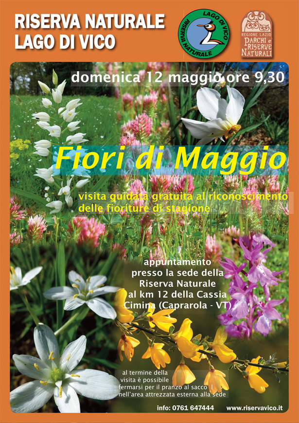 Domenica 12 maggio la Riserva Naturale propone una visita guidata gratuita alla scoperta e al riconoscimento delle fioriture di stagione. L'appuntamento è alle ore 9,30 presso la sede lungo la Cassia Cimina, al km 12,00, nel Comune di Caprarola(VT). La visita, che si snoderà attraverso i castagneti e la cerreta nelle immediate vicinanze, sarà preceduta da una breve presentazione proposta nei locali della sede. Al termine della mattinata, chi vuole può fermarsi per il pranzo al sacco nell'area attrezzata esterna.