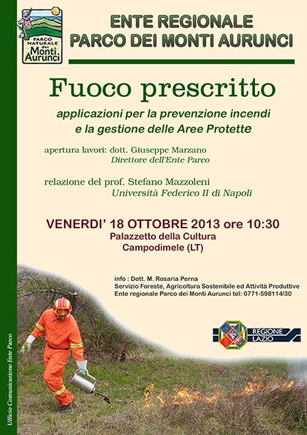Obiettivo dell'iniziativa è quella di fornire una conoscenza di base della tecnica del fuoco prescritto, che prevede la realizzazione preventiva di un fuoco controllato con lo scopo di eliminare la biomassa ed evitando il successivo verificarsi di incendi ben più gravi e dannosi. Già sperimentata in diversi territori e realtà italiane ed estere, ivi comprese alcune Aree Naturali Protette, questa tecnica risulta competitiva nei confronti di altre forme di prevenzione si dal punto di vista economico che ambientale.
