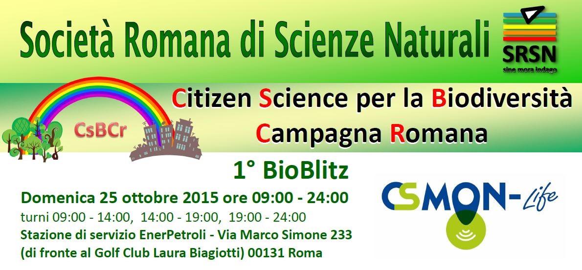 La Società Romana di Scienze Naturali (SRSN), partner del progetto CSMON-LIFE, organizza per il 25 ottobre un "Bioblitz" nella Campagna Romana per coinvolgere i cittadini e i propri soci nelle attività di citizen science di conoscenza delle specie di fauna e flora del Lazio.