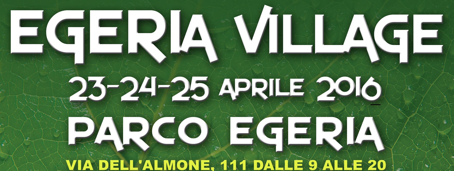 Per 3 giorni consecutivi l’area intorno alla sacra fonte Egeria, una delle più antiche e importanti di Roma nella valle della Caffarella fra la via Appia e la via Latina, verrà attrezzata per ospitare l'Egeria Village. Si tratta di un evento realizzato nel parco Egeria, dalla cui fonte ci si può rifornire di acqua tutto l’anno, che ha l'obiettivo di creare un connubio tra cucina e natura e avvicinare i consumatori ad un modo di fare la spesa e di mangiare più sostenibile ed attento all’ambiente. Ci saranno postazioni di Street Food italiano per permettere ai visitatori di gustare i prodotti tipici e a Km 0 , fra cui quelli con il marchio regionale “Natura in Campo – i prodotti dei Parchi” e saranno realizzati spettacoli, eventi ed escursioni. Per gli appassionati di enogastronomia e di visite “open air” sarà un’occasione da non perdere.