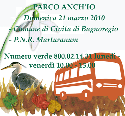 21 marzo 2010 Facile passeggiata sulla ferrovia abbandonata accompagnati dal Direttore del Museo Naturalistico e dai guardiaparco del Parco di Marturanum. Partenza da Roma Piazzale Nervi - EUR:ore 8.30 Grado di difficoltà del percorso: basso Lunghezza del percorso in Km e durata: 6 Km Abbigliamento/attrezzatura: abbigliamento comodo, scarponcini, acqua e pranzo al sacco, obbligatoria torcia elettrica Accessibilità: bambini sì, passeggini sì preferibilmente con ruote grandi