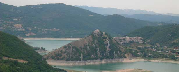 Nella piazza principale, accanto al belvedere, un pannello dell’Itinerario dei Parchi Montani offre una ricostruzione del paesaggio della valle prima della sua sommersione.