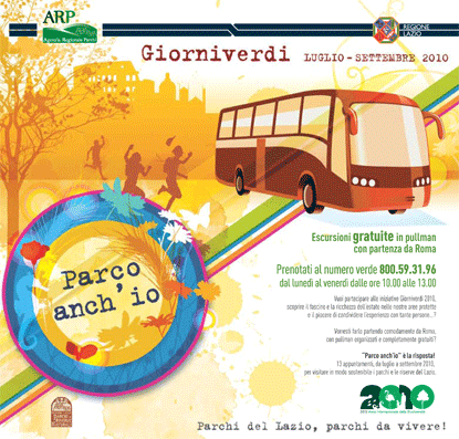 Ecco tutte le attività gratuite "Parco Anch'io" per l'estate nelle Aree Proette del lazio con partenza in pulmann da Roma. Per informazioni e prenotazioni numero verde 800.59.31.96 dal lunedì al venerdì dalle 10 alle 13.