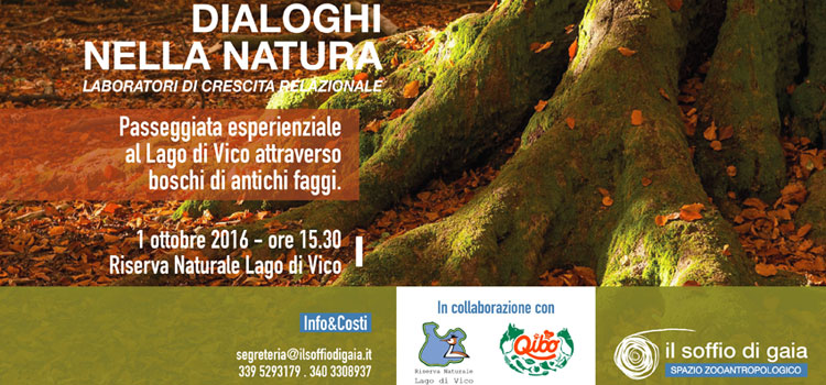 "Dialoghi nella Natura" è un progetto ideato per aiutare i partecipanti, attraverso attività particolari e divertenti, a ritrovare un rapporto autentico con la Natura, fatto di osservazione, ascolto e conoscenza degli abitanti del bosco, animali e vegetali. La presenza canina, per chi partecipa con il proprio cane, sarà un ulteriore aiuto per immergersi nell'atmosfera, una valida occasione per approfondire e migliorare la relazione con il proprio fedele amico.