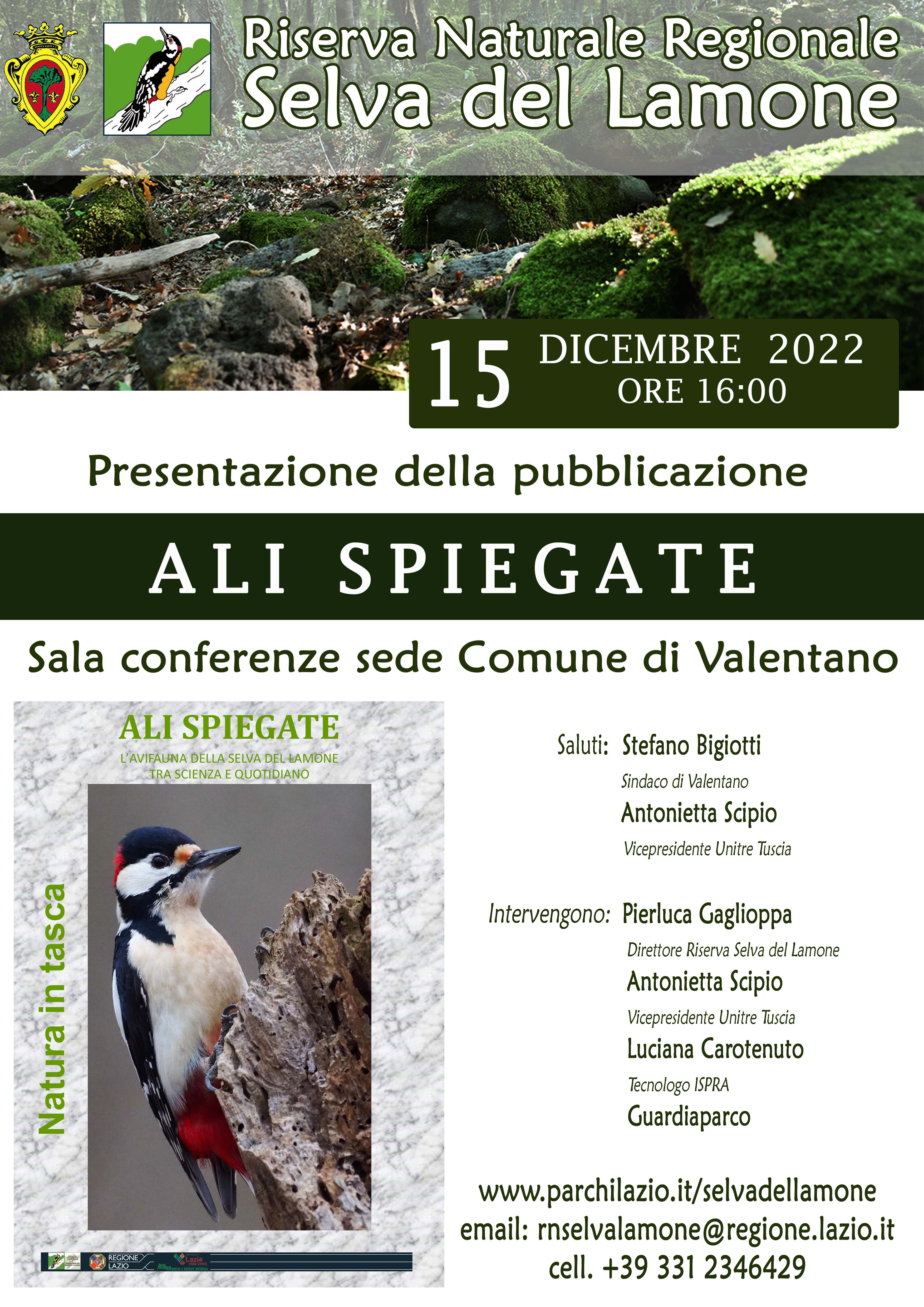 Interverranno alla presentazione Il Sindaco di Valentano Stefano Bigiotti, il vicepresidente dell’associazione Unitre Tuscia Antonietta Scipio, il Direttore della Riserva Naturale Regionale Selva del Lamone Pierluca Gaglioppa , gli autori: Luciana Carotenuto Funzionario ISPRA , Giuseppe Campanella, Alessandro Ceccarini, Andrea Schiavano, Ilaria De Parri, Aldo Terazzi (Guardiaparco)