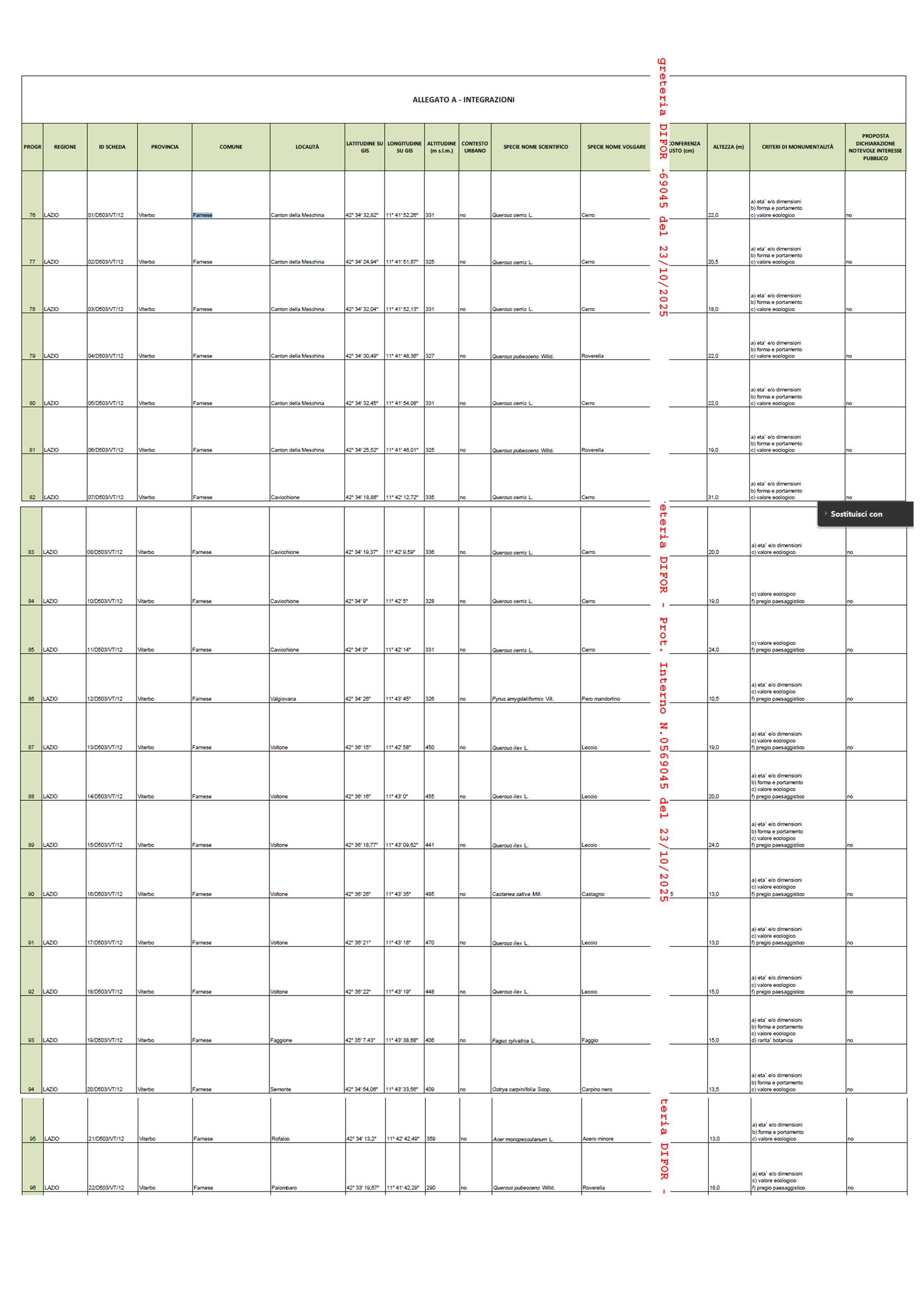 Gli [🌳] alberi monumentali [🌳] sono caratterizzati da un elevato valore biologico ed ecologico, Il Ministero dell'agricoltura, della sovranità alimentare e delle foreste ha pubblicato l’elenco aggiornato, (https://www.masaf.gov.it/.../ServeBLO.../L/IT/IDPagina/23690) tra quelli inseriti 21 sono nel territorio di Farnese censiti dal personale dell’Area Protetta.