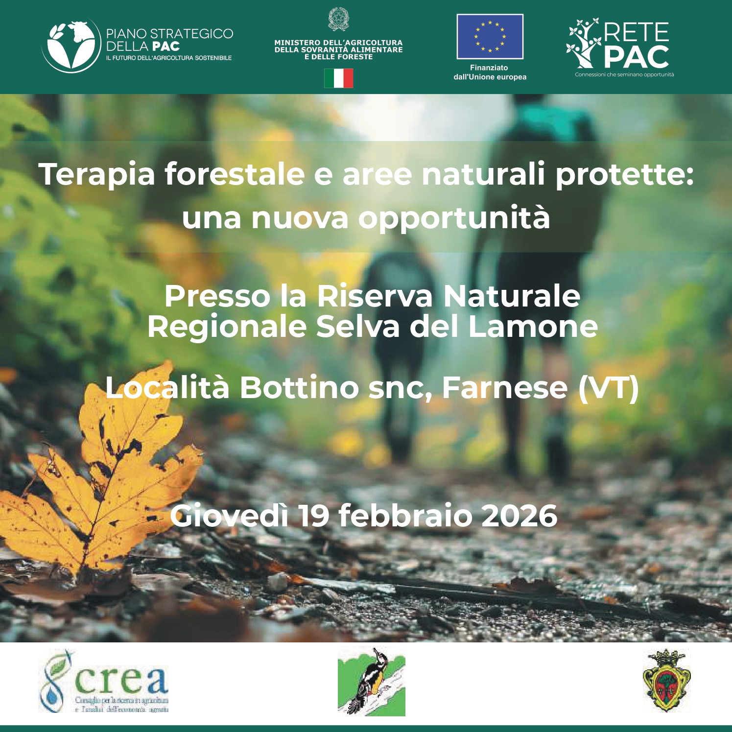 La Riserva Naturale Regionale Selva del Lamone ospita l’evento organizzato dal CREA (Consiglio per la ricerca in agricoltura e l'analisi dell’economia agraria)  "Terapia forestale e aree naturali protette: una nuova opportunità".
