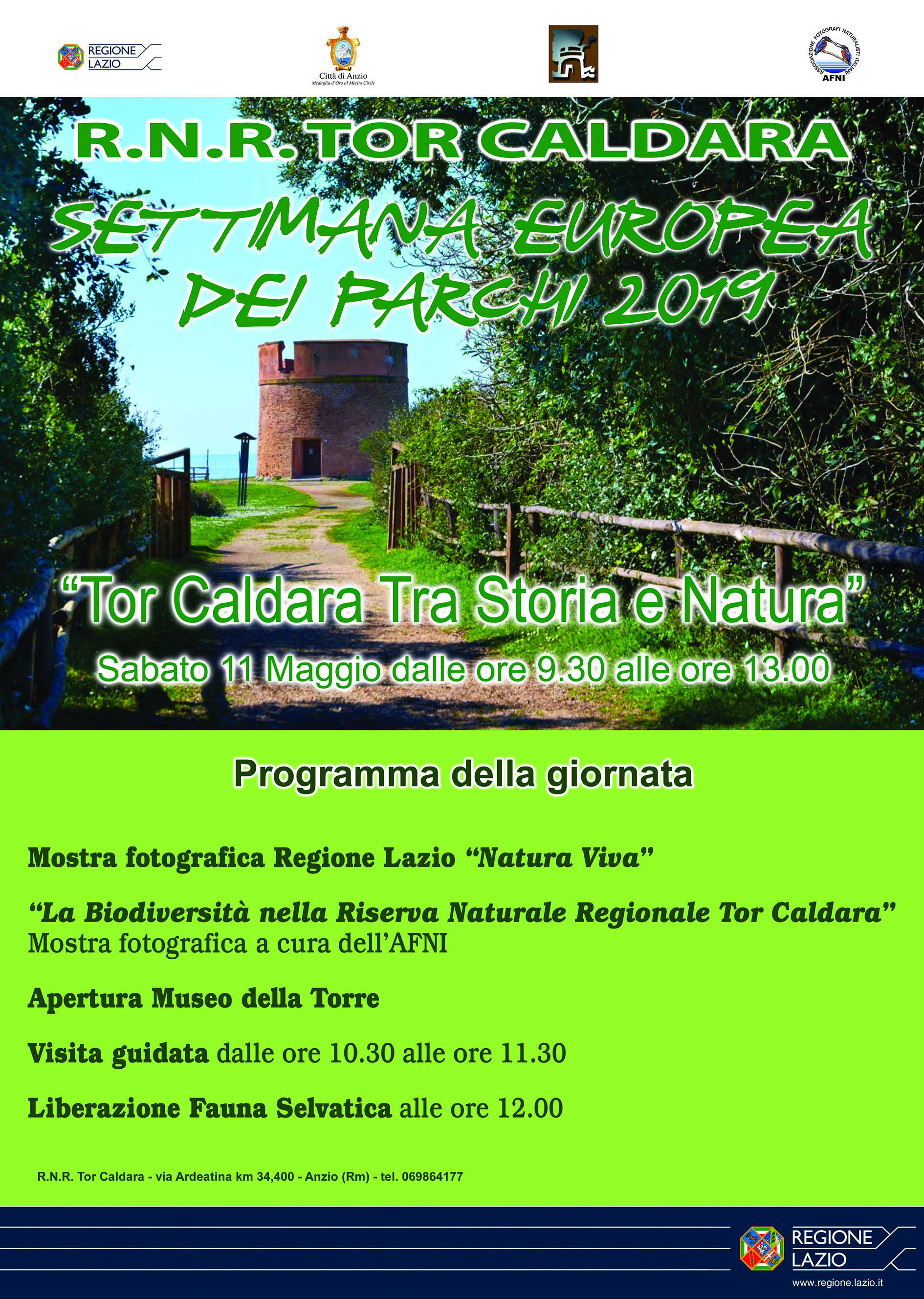 Sabato 11 maggio 2019 la Riserva Naturale Tor Caldara, in occasione della settemina europea dei parchi 2019, organizza un'evento dal titolo "Tor Caldara - tra storia e cultura"che inizierà alle ore 09.30. la giornata prevede: