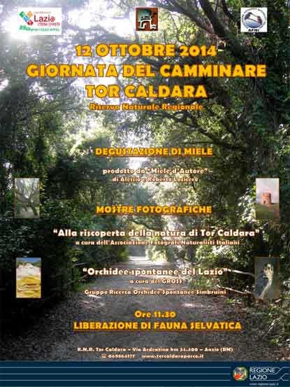 L'attività nella Riserva di Tor Caldara prevede la visita di una mostra fotografica alla riscoperta della natura della riserva a cura dell'associazione fotografi naturalisti italiani e di una mostra una sulle orchidee spontanee del Lazio a cura del gruppo ricerca orchidee spontanee simbruini, inoltre durante la mattinata si assisterà alla liberazione della fauna selvatica e sarà possibile la degustazione del miele locale.