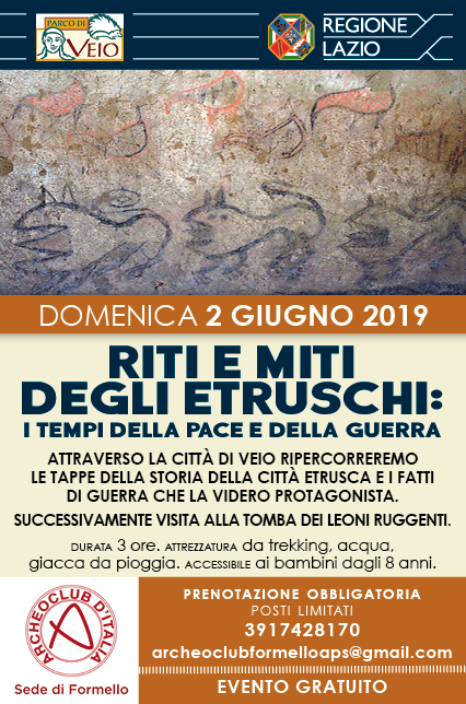 Attraverso la città di Veio ripercorreremo le tappe della storia della città etrusca e i fatti della storia che la videro protagonista. Successivamente visita alla tomba dei Leoni Ruggenti.