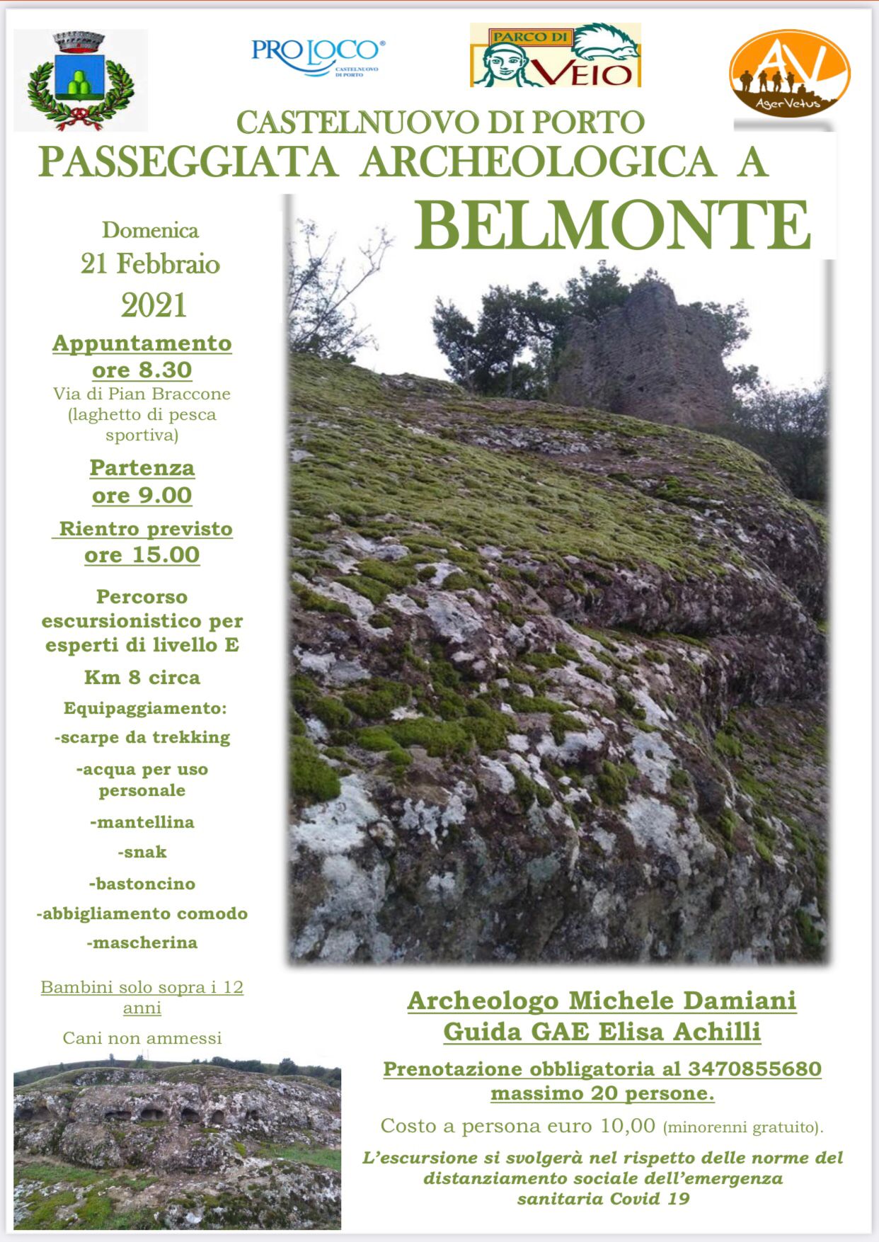 Passeggiata archeologica a Belmonte, Castelnuovo di Porto. Organizzata da Comune di Castelnuovo, Pro Loco, Ager Vetus con il Patrocinio del Parco di Veio. Vedi allegato per info.
