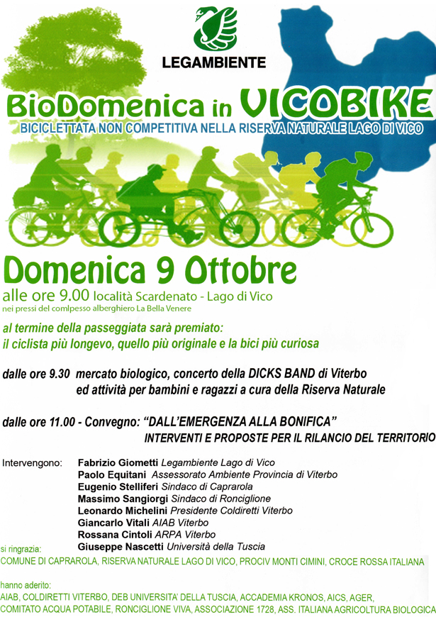 BioDomenica è una giornata nazionale di incontro tra il mondo agricolo e i cittadini per promuovere il consumo di prodotti sicuri e di qualità, legati al territorio, alle sue tradizioni e alla sua cultura. Un patrimonio particolarmente ricco nella Valle di Vico, minacciato però dalle ricorrenti fioriture dell'alga rossa e dalla scomoda eredità lasciata dalle attività del centro chimico militare che hanno costretto tutta la comunità che vive e lavora intorno al lago a fronteggiare una difficile emergenza.