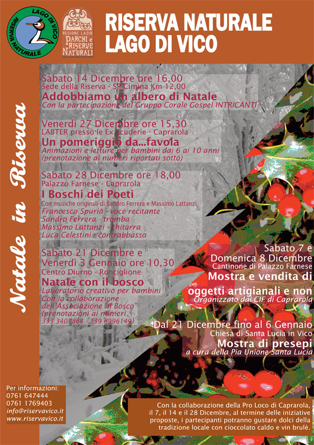 In occasione delle prossime festività, la Riserva Naturale Lago di Vico ha organizzato un ricco calendario di manifestazioni per la promozione del territorio, realizzate con la collaborazione di varie associazioni locali.