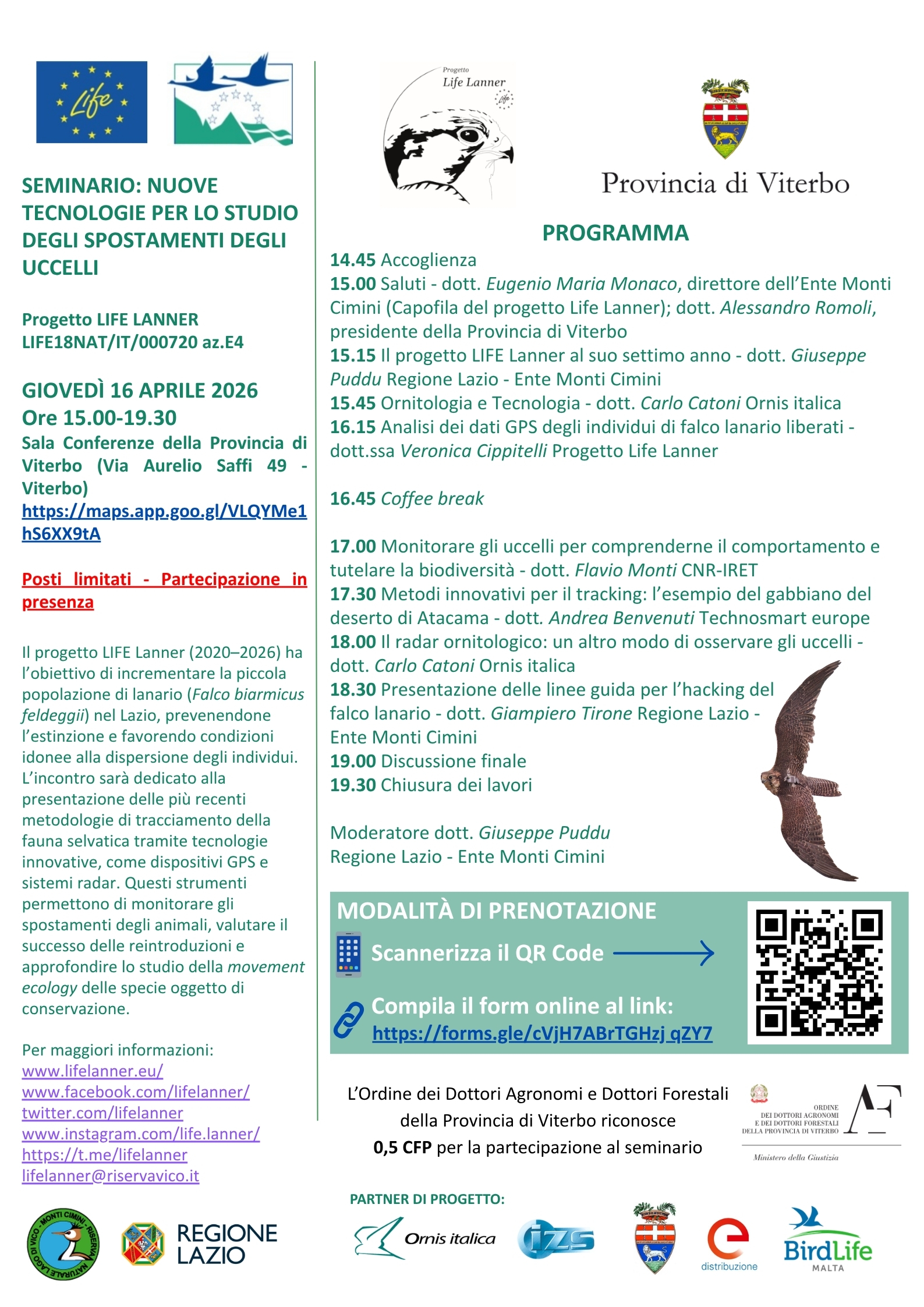 Il 16 aprile, presso la sala delle conferenze della Provincia di Viterbo, si terrà il quarto seminario tematico previsto nell'ambito del progetto LIFE LANNER* LIFE18/NAT/IT/000720.