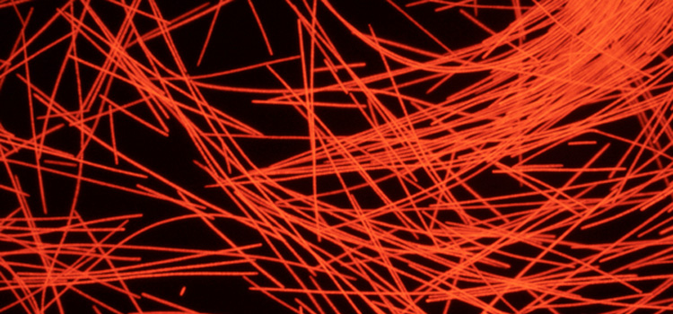 Nell'immagine in alto (da Researchgate.net), ottenuta mediante micrografia ad epifluorescenza, sono raffigurate le microcistine dell'alga: la caratteristica colorazione rossa deriva da una sostanza, la "ficoeritrina", che aiuta le alghe a trarre beneficio della luce solare anche in profondità dove essa giunge a malapena.