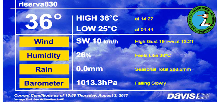 Per conoscere in tempo reale i parametri meteo registrati dalla centralina installata presso la sede della Riserva a Poggio Gallesano vai a questa pagina.