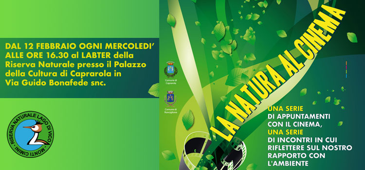 Dal prossimo 12 febbraio ogni mercoledì segnate sulla vostra Agenda degli appuntamenti l'iniziativa "La Natura al Cinema" presso il Labter della Riserva Naturale.