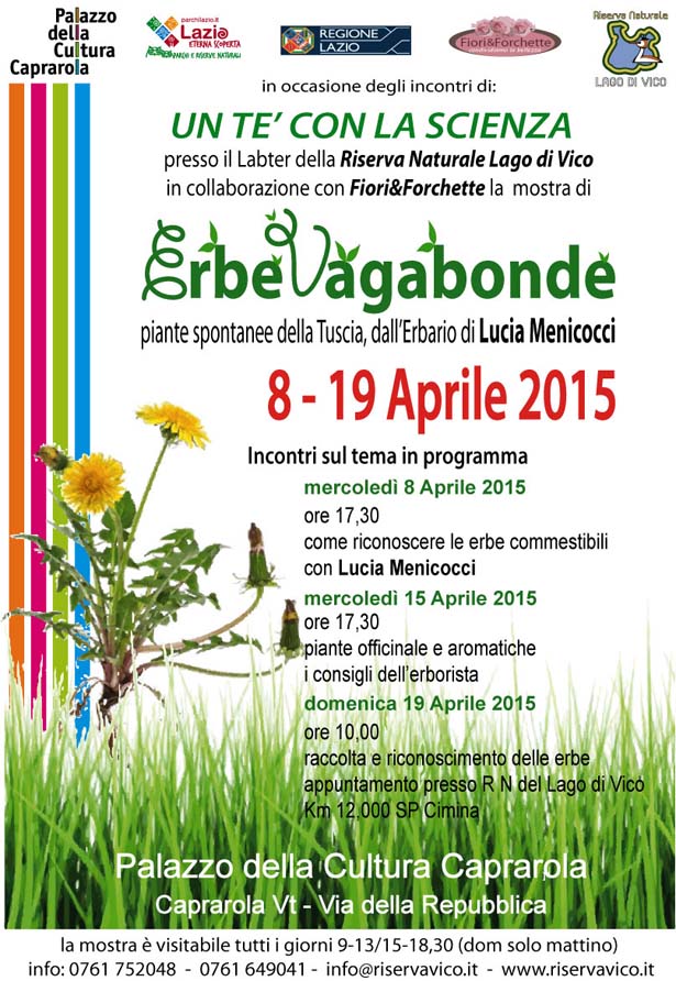 In occasione dei prossimi incontri scientifici in programma per la rassegna UN TE' CON LA SCIENZA presso il Labter della Riserva Naturale, è stata organizzata una mostra sulle piante spontanee della Tuscia, dal titolo ERBE VAGABONDE.